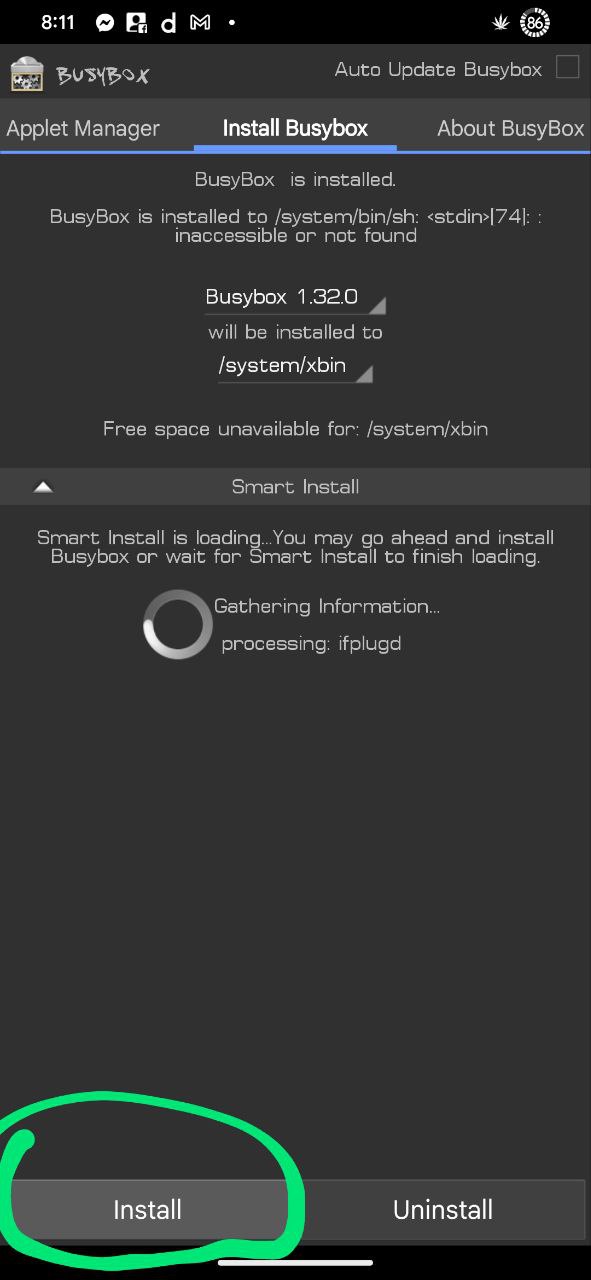 এটি /system/xbin/ বা /system/bin/ এ BusyBox ইনস্টল করবে।