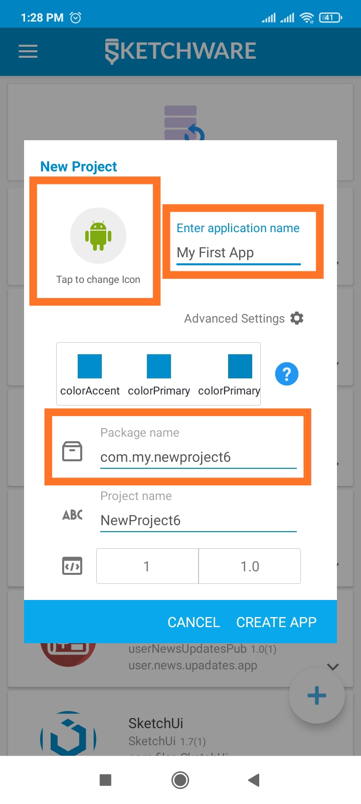 - Package Name: ইউনিক প্যাকেজ লিখুন, উদাহরণ: com.username.myfirstapp