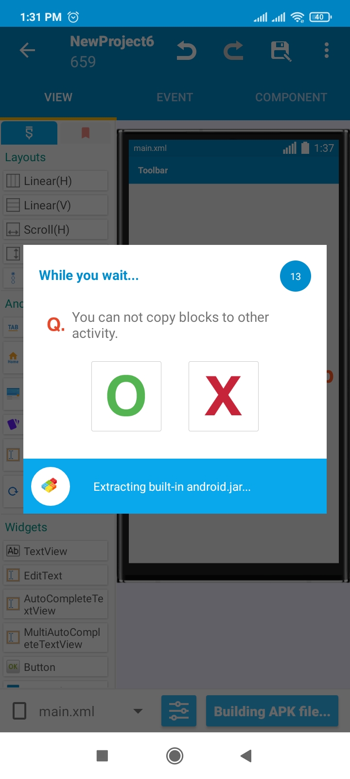 এই কম্পোনেন্টগুলো ভিজ্যুয়ালভাবে স্ক্রিনে দেখা না গেলেও অ্যাপে কার্যকারিতা যোগ করে। প্রতিটির জন্য EVENT ট্যাবে ব্লক দিয়ে লজিক সেট করতে হয়।