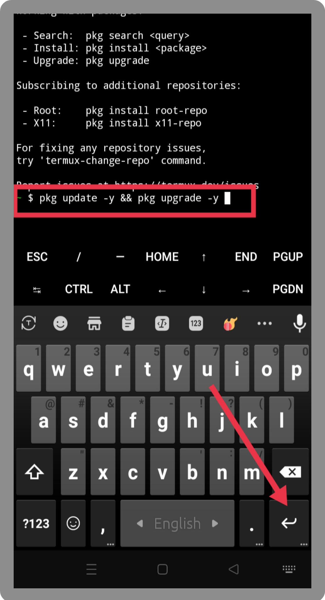pkg update -y && pkg upgrade -y