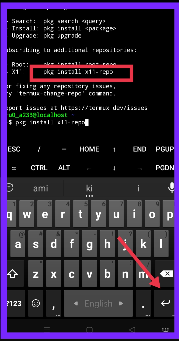 তারপর “x11-repo” ইন্সটল করে নিন যা আমাদের -Termux এ ডেস্কটপ ইন্টারফেস ইন্সটল করতে লাগবে।