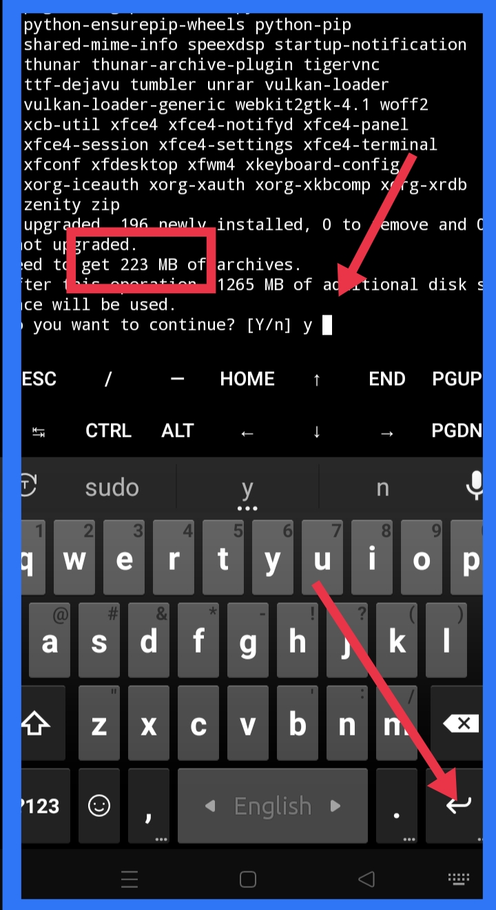 235 MB ডেটা ডাউনলোড হবে y -enter করে ইন্সটল হওয়া পর্যন্ত অপেক্ষা করুন।