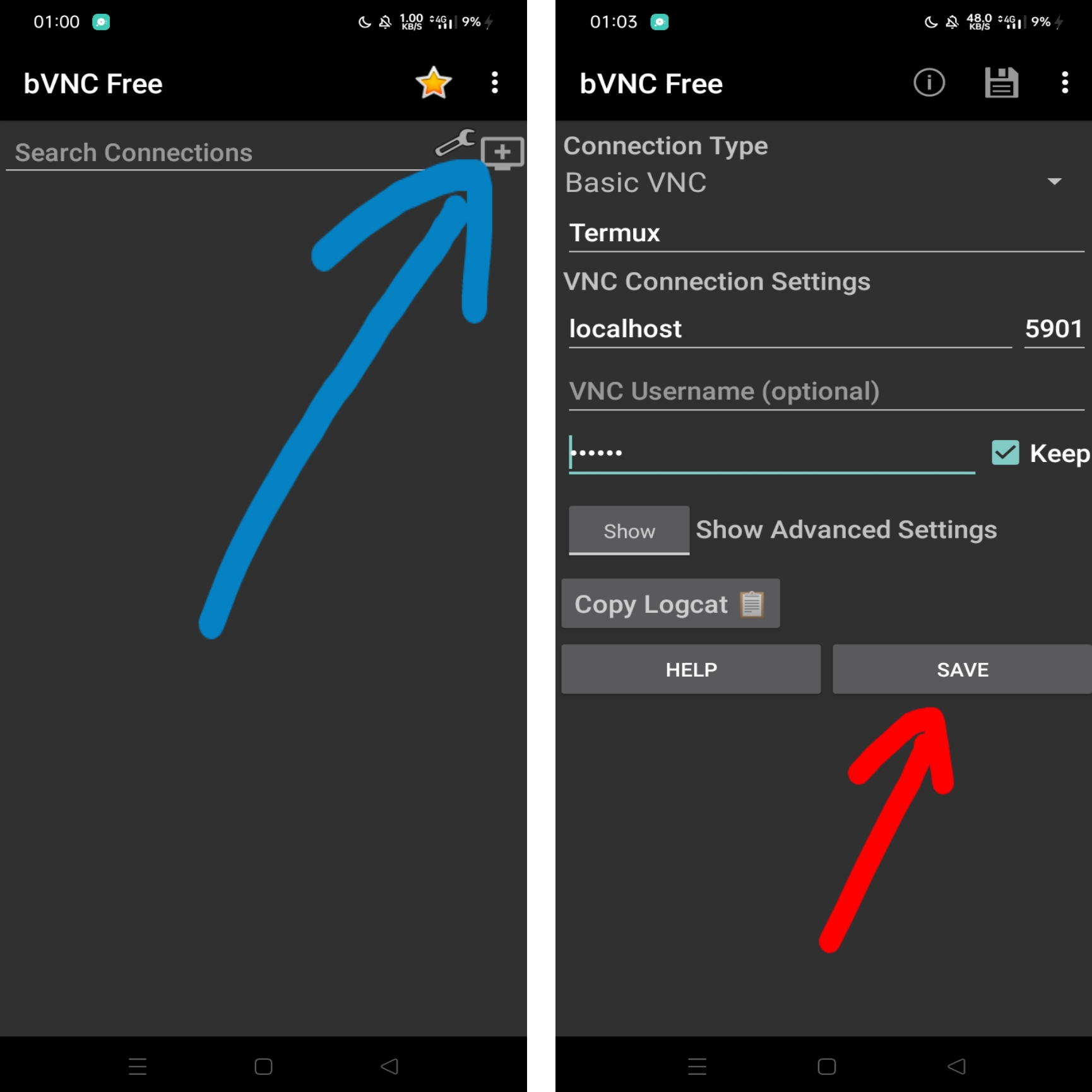 ইন্সটল করার পর এপ থেকে + আইকনে ক্লিক করে নিচের মত করে একইরকম টাইপ করুন। পাসোয়ার্ড তাই দিবেন যা Vnc তৈরি করার সময় দিয়েছিলেন তারপর Save করুন।