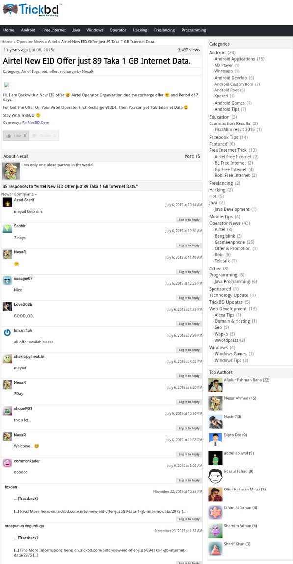 বহু ফুটপ্রিন্ট ডাটা ঐ সময় রেখেছিলাম পরে অবশ্য তা ফরম্যাটে হারায় (ব্যাকআপ না রাখার বাজে অভ্যাস) – তবুও কয়েকটি ইমেইজে চলুন ফিরে দেখি অতীত TrickBD এর রূপ: