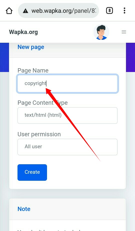 এখন copyright নামে একটা পেজ তৈরী করুন।