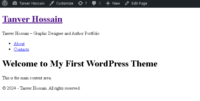 <h1>Welcome to My First WordPress Theme</h1>