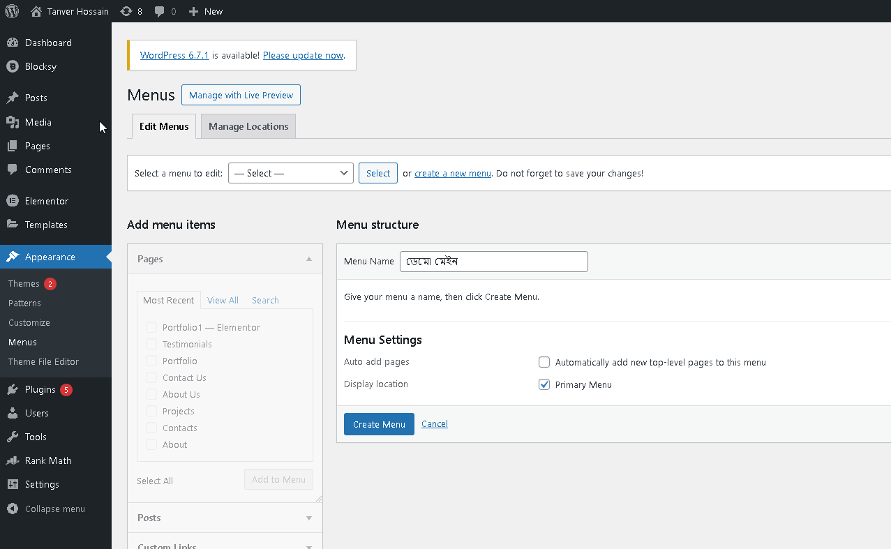 - Appearance > Menus এ যান।