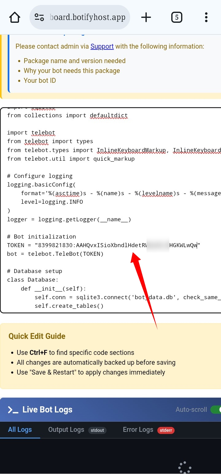 তো ডিরেক্ট দেখাচ্ছি সব করার পর এখানে এসে Bot code এ নিচের থেকে কোড কপি করে এখানে বসান! Bot token ও বসিয়ে দিন!