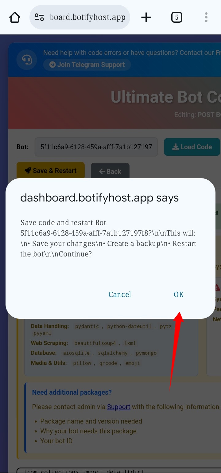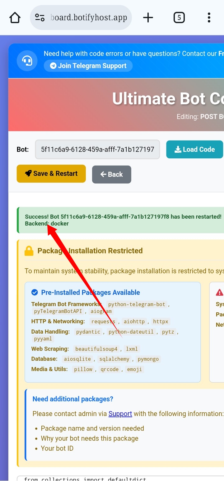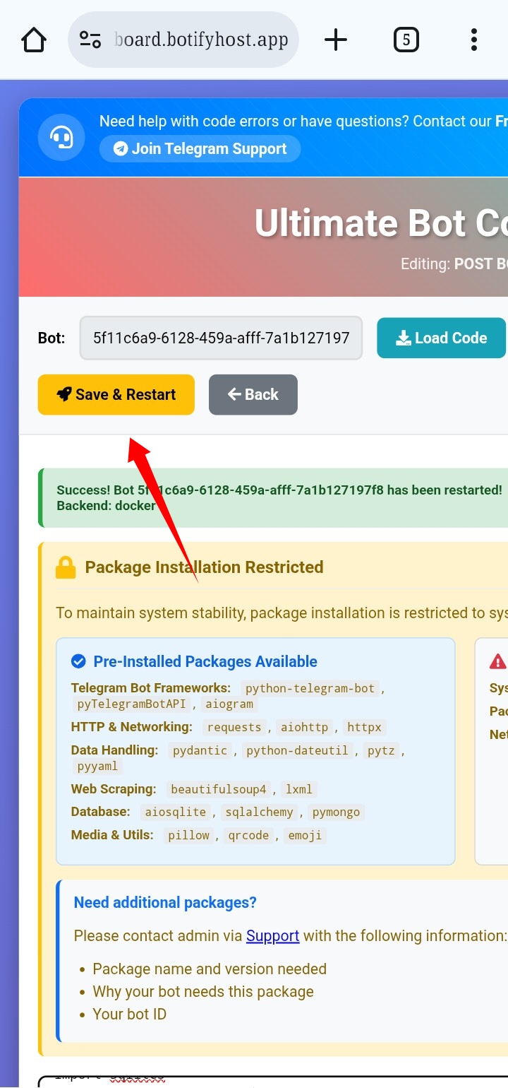 success হয়েছে গেছে Bot host!